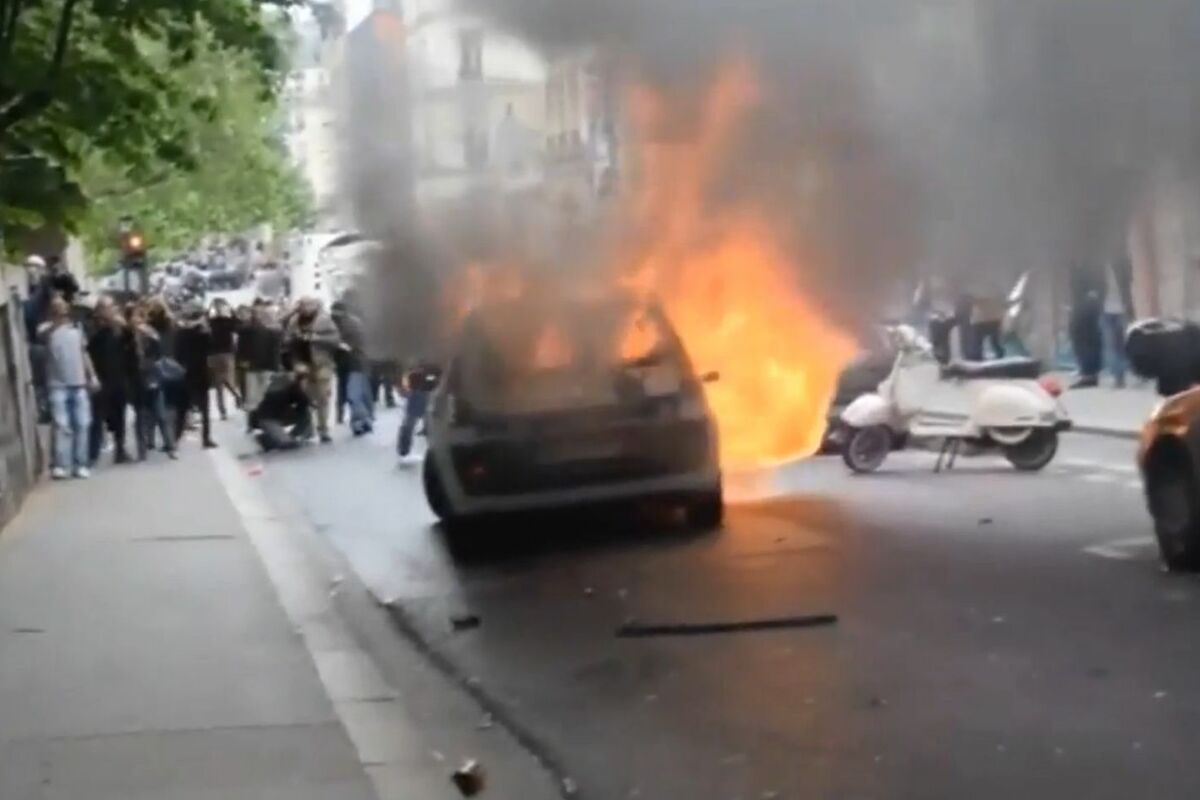 Plavci u plamenu: Demonstranti spalili policijski auto u Parizu! (VIDEO)