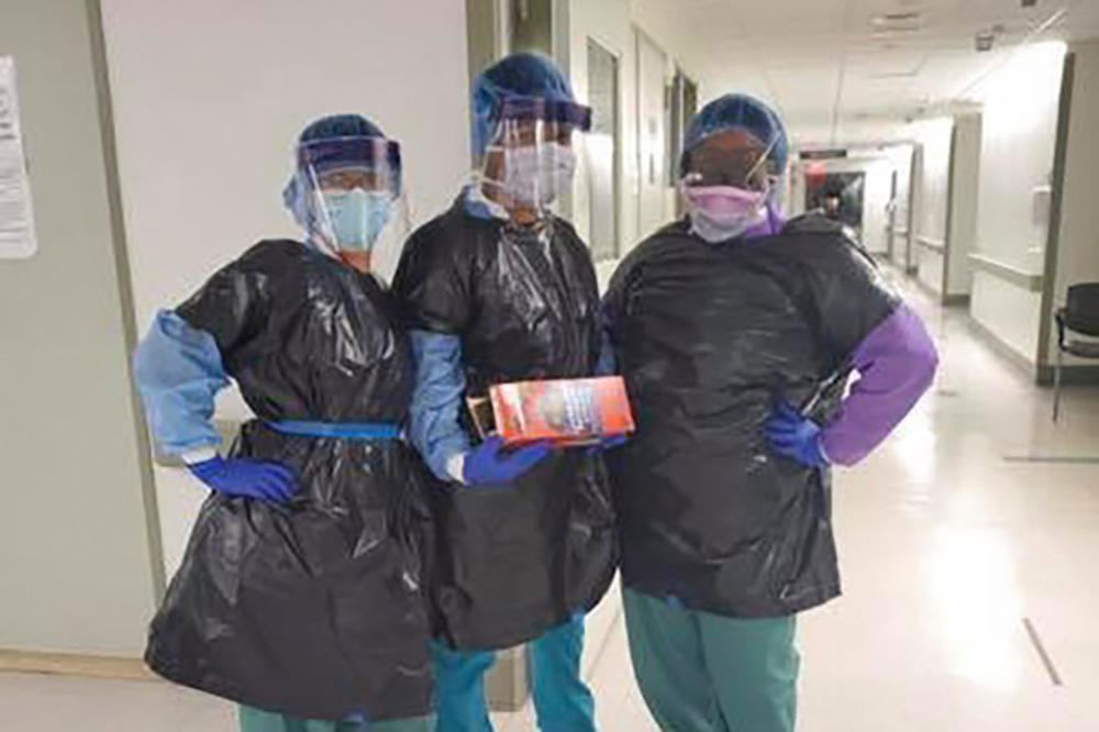 Na fotografiji koja se vrlo brzo proširila društvenim mrežama vide se tri medicinske sestre u bolnici Maunt Sinaj Vest koje poziraju u hodniku bolnice obučene u velike crne plastične kese za đubre prekrojene u zaštitne haljine, i jedna od njih kako drži kutiju sa tim kesama, piše Njujork post.