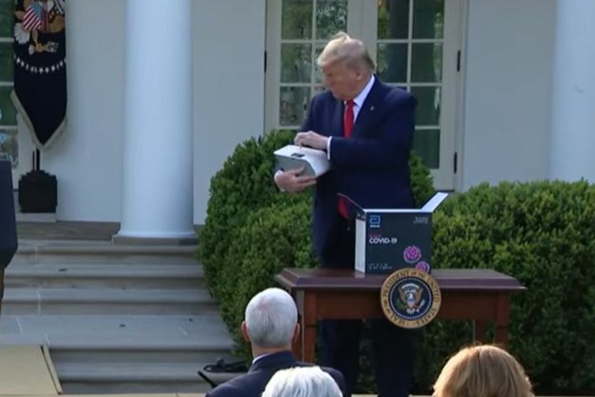 Govoreći u Beloj kući tokom konferencije za štampu, predsednik je otvorio kutiju kompanije "Abot" (Abbott Laboratories) i novinarima pokazao novi brzi test.