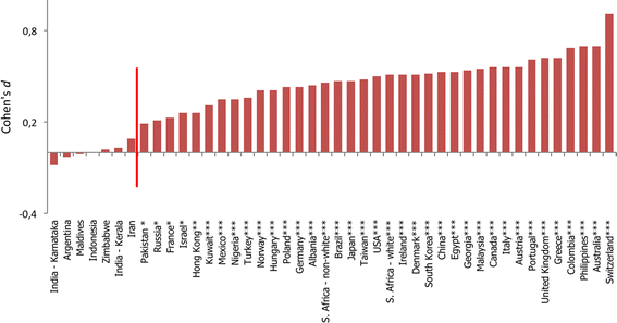 da se smejanje u ovakvim državama može videti i kao dvoličnost. Kris je zamolio na hiljade ljudi iz 44 zemlje sveta da ocene ličnost 8 ljudi koji se smeju, kao i onih koji su na fotografiji ozbiljni. poput Rusije, Irana i Japana, ljude koji se smeju smatraju - manje inteligentnim. da rezultati ukazuju na to da korupcija može da oslabi evolutivno važne signale poput osmeha ali rezultate donekle treba uzeti s rezervom jer je naše ponašanje takođe uslovljeno polom i kulturom odaćete utisak da ste manje inteligentni u ovim zemljama: