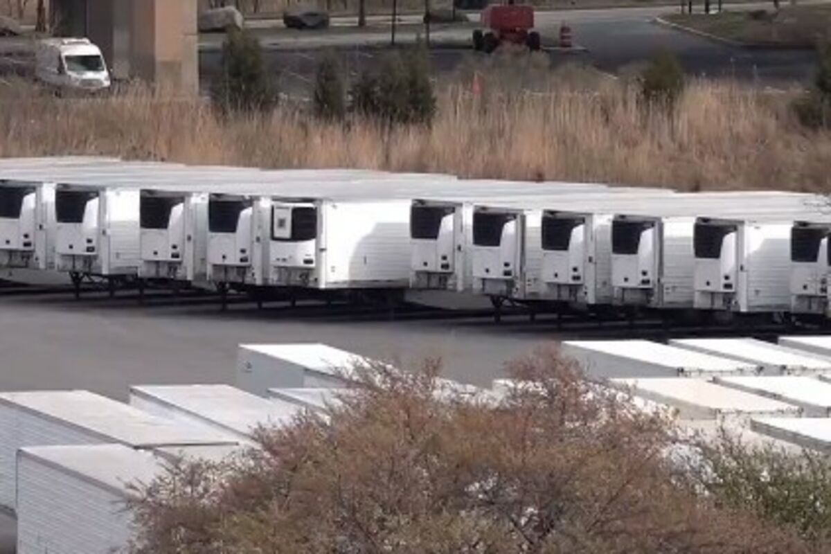 Najmanje 60 hladnjača sa prikolicom stoji od petka (10. aprila) na parkingu ispred stadiona Ikan na Randal's ajlendu, pošto je Njujork preko noći prijavio veliki broj smrti od koronavirusa.