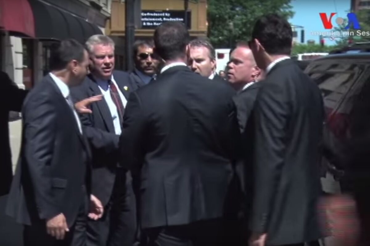 Jedan od Erdoganovih telohranitelja je hteo da stane na isto to mesto, ali su pokušali da ga ometu u tome. Tek pošto su se umešali drugi predstavnici specijalnih službi sukob je rešen.