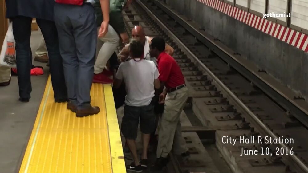 Čovek koji je stajao naslonjen na stub, na stanici njujorške podzemne železnice "Tribeka", pao je na šine neposredno pošto je sa razglasa saopšteno da je voz udaljen samo dve stanice.