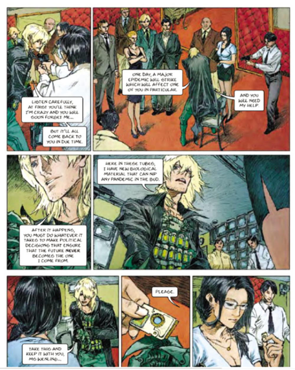 Grafički roman prikazuje naučnike u laboratoriji u Kini koji eksperimentišu sa smrtonosnim patogenima. Odjednom se iz budućnosti pojavljuje "junak" upozoravajući vlasti na nadolazeću pandemiju i predstavlja protivotrov iz svemira. Onda junaku zli oportunisti ukradu lek i prodaju ga farmaceutskoj kompaniji.