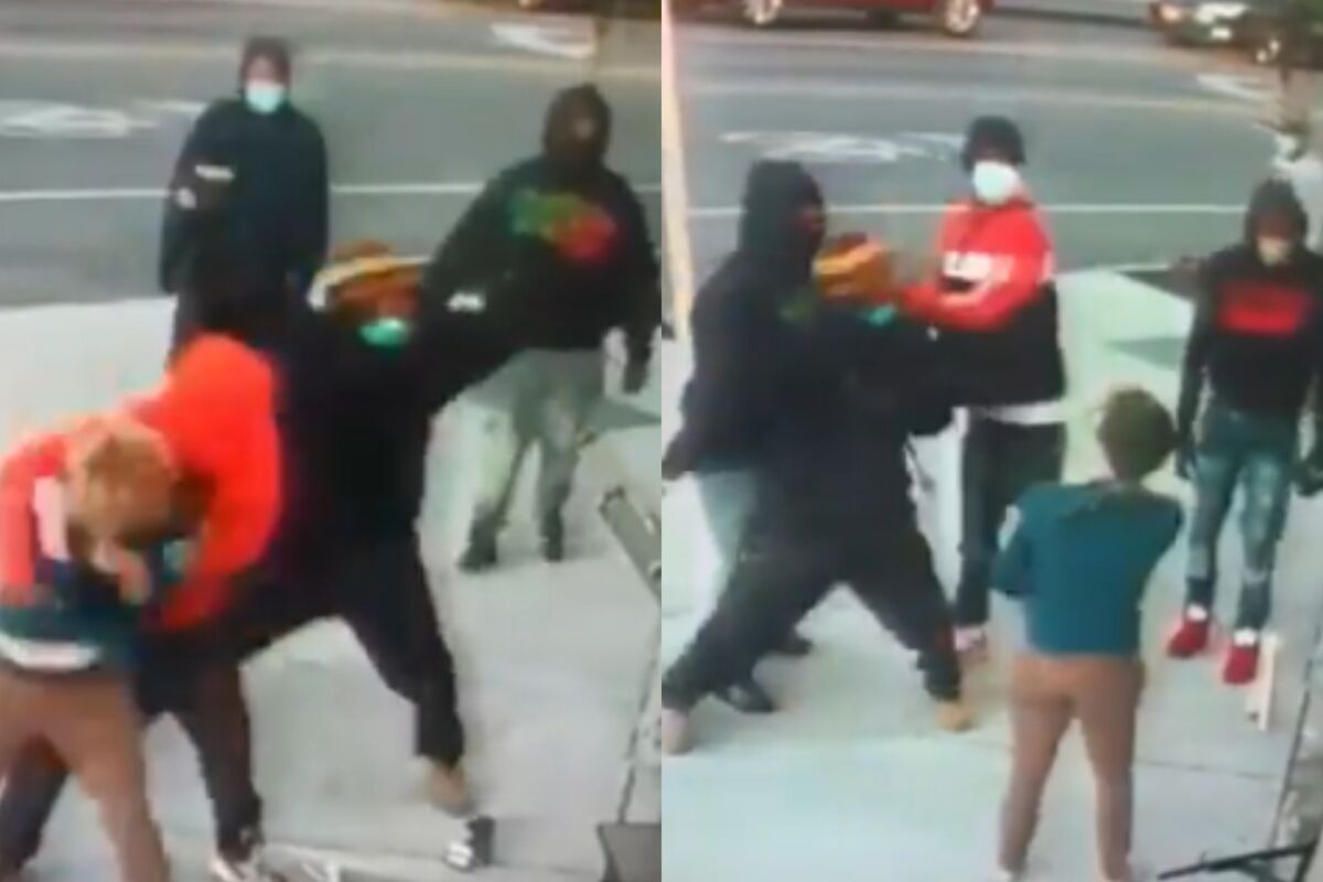 Snimci sa nadzornih kamera incidenta, objavljeni ranije, pokazuju ženu koja se suočila sa najmanje šest muškaraca ispred prodavnice za protivpožarnu opremu Ročester u saveznom delu Njujorka. Banda agresivno prilazi ženi i udara o vrata i prozore prodavnice daskama. Jedan od muškaraca viđen je kako baca merdevine na vrata pre nego što je grupa krenula i udaljila se.