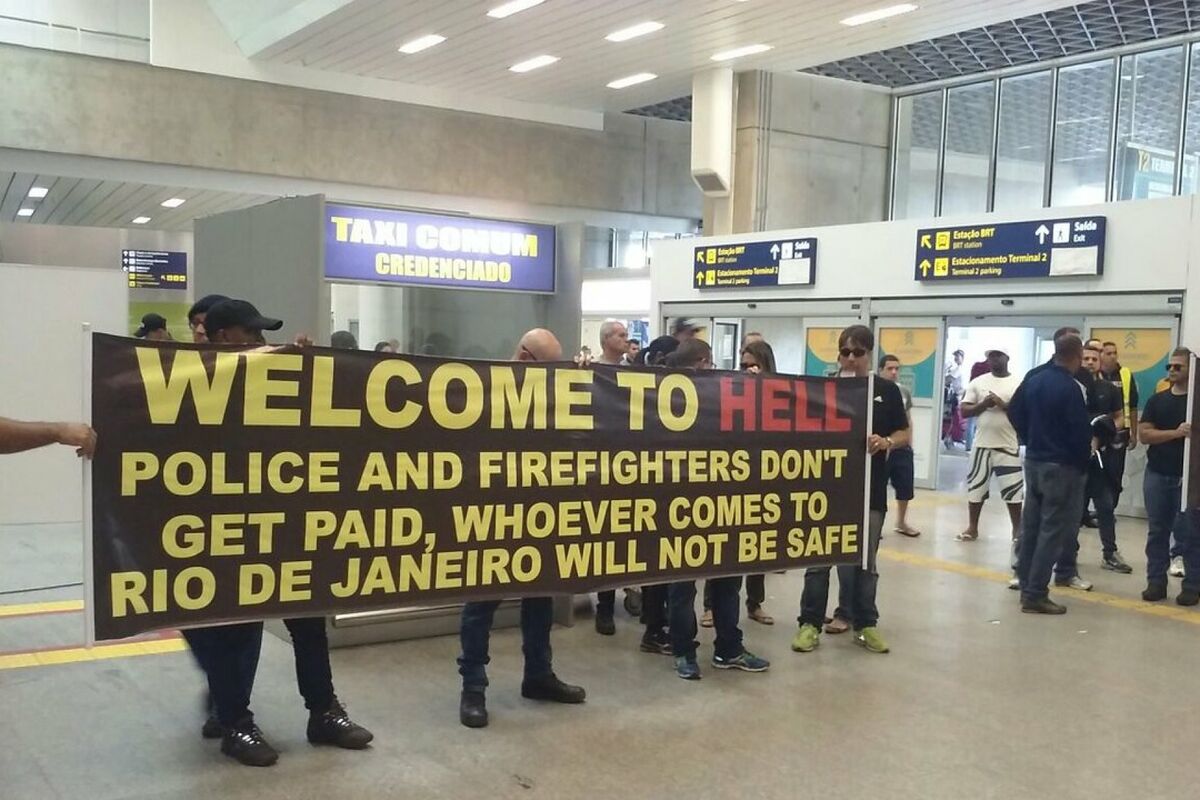 Grupa policajaca snimljana je na aerodromu u Rio de Žaneiru sa transparentom upućenom turistima na kome piše: