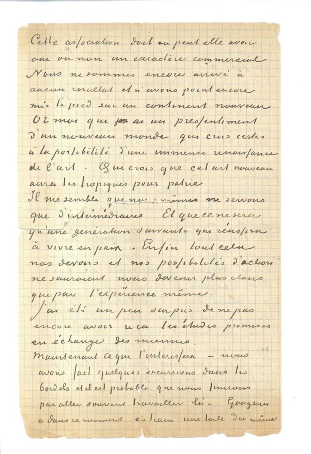 Njihova poruka počinje Van Gogovim utiscima o Gogenu koga opisuje kao netaknuto stvorenje sa instinktima divlje zveri.