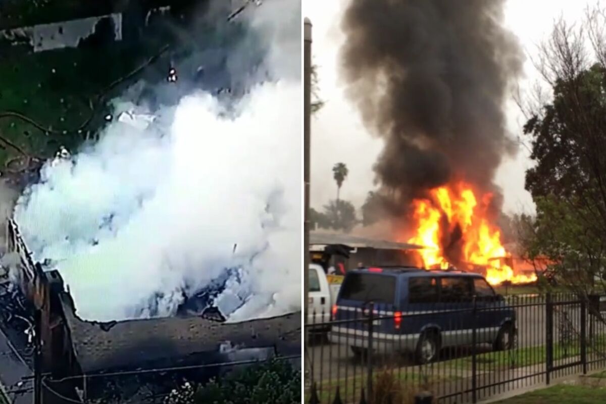 Četiri osobe su poginule a još najmanje pet se vode kao nestale nakon što se mali avion Cesna 310 srušio na dve kuće u Riversajdu nedaleko od Los Anđelesa.