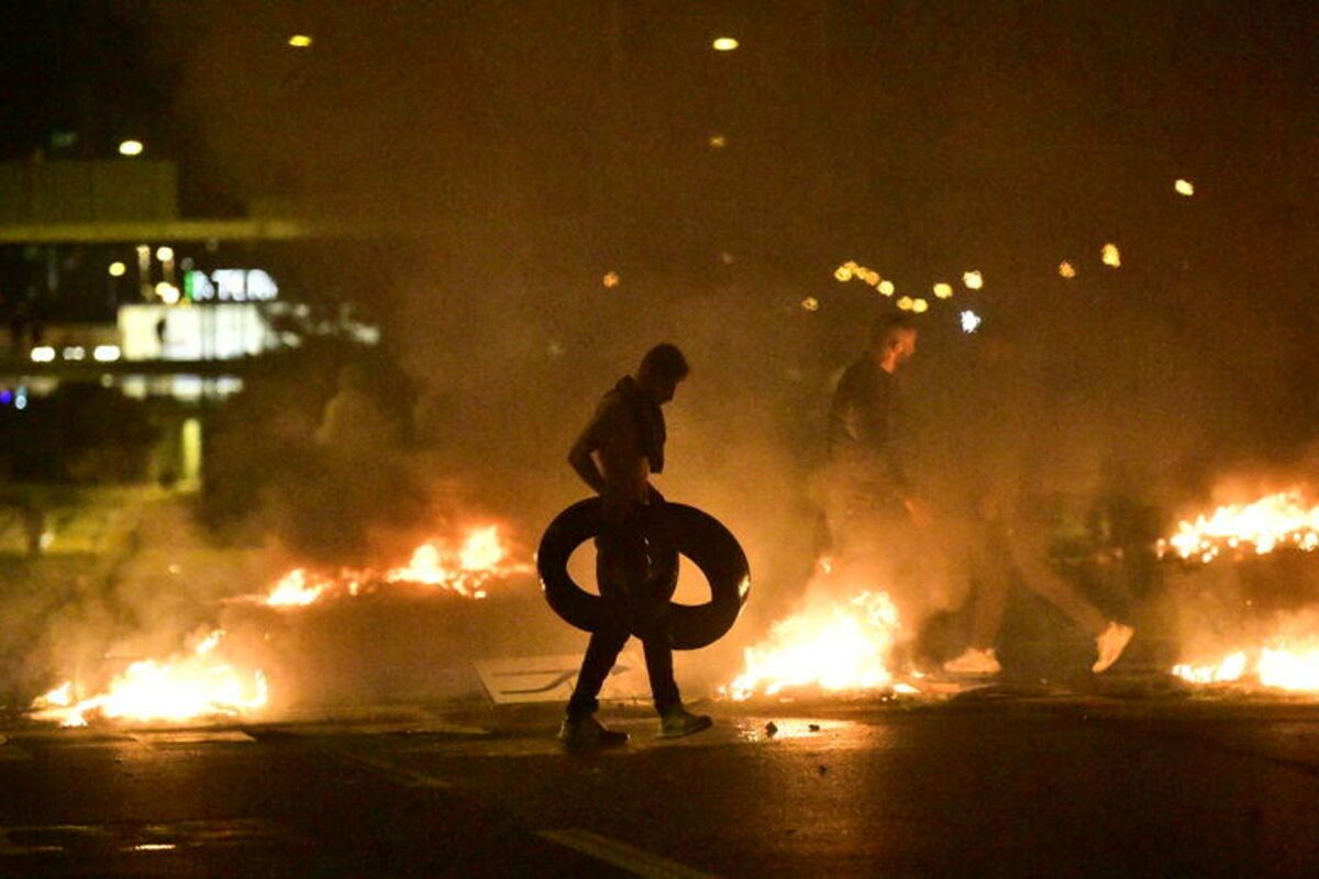 Pobunjenici su šipkama od polomljenih saobraćajnih znakova razlupali autobuska stajališta, a zatim su kamenje i baklje bacali na policajce. Dalje niz put, automobili, gume i kante za smeće bili su zapaljeni.