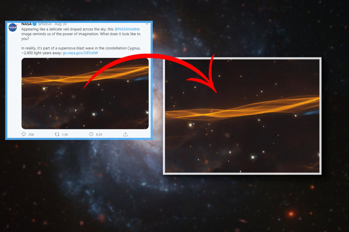 Iako izgleda kao nežni i svetli veo prekriven nebom, ova slika svemirskog teleskopa "Habl" zapravo prikazuje mali deo ekslozivnog talasa Cygnus supernove, koja je udaljena 2.400 svetlosnih godina.