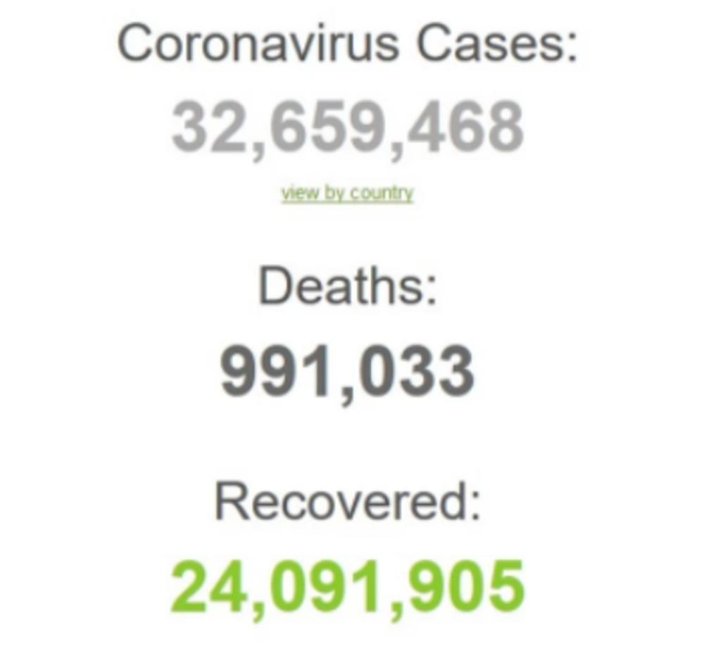 Kako se navodi na sajtu, do sada je od korona virusa izlečeno 24.091.905 ljudi u svetu, od ukupno 32.659.468 zaraženih.