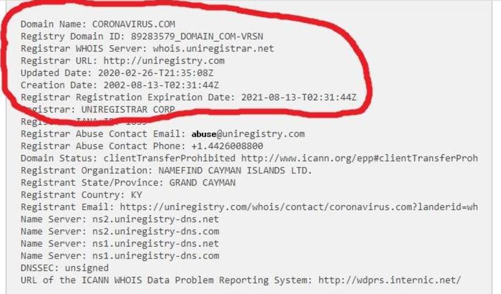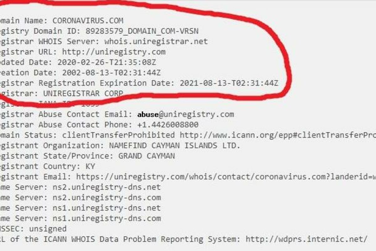 Njegova se kompanija zove NameFind Cayman Islands LTD. Domenu coronavirus.com registrirao je do 13. avgusta 2021. godine.