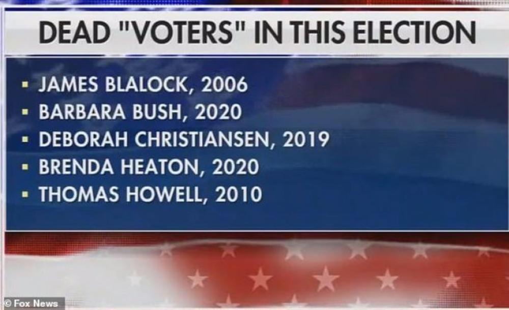 Na Karlsonovoj listi su se našla i imena najmanje četiri mrtva glasača u Džordžiji - gde Donalda Trampa i Džoa Bajdena razdvaja manje od 15.000 glasačkih listića.