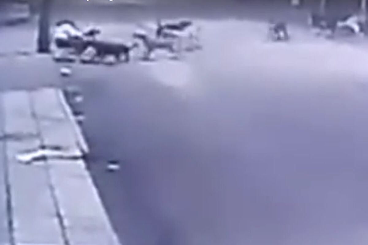 Na snimku koji je zabeležila nadzorna kamera vidi se kako se ona uzaludno bori sa njima, pokušava da ustane, ali je veliki broj pasa ponovo napada i obara na zemlju.