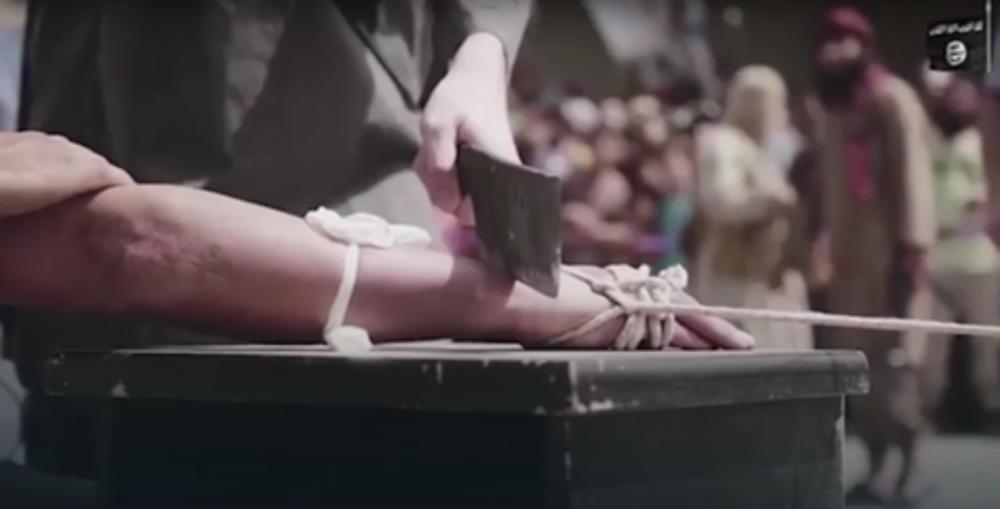 Najstrašniji trenutak u snimku ujedno je i svakodnevna praksa džihadista. Čovek optužen za krađu izveden je na ulicu gde mu je pred okupljenom publikom dželat satarom i čekićem odsekao ruku. Ovo je, inače, kazna za sve one za koje postoji sumnja da u krali na teritoriji samoproglašenog kalifata.