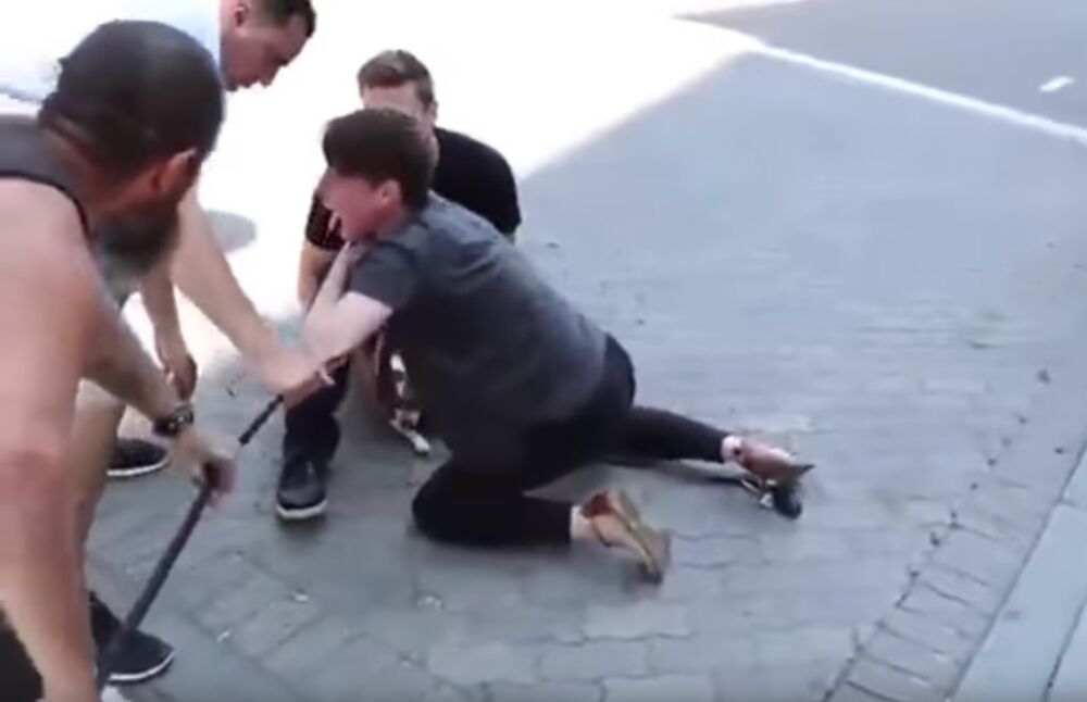 Već na početku videa čuju se vrisci, a potom se vidi i kako dvojica muškaraca očajnički pokušavaju da pomognu ženi koja drži malenog psa kojeg je ščepao pitbul.