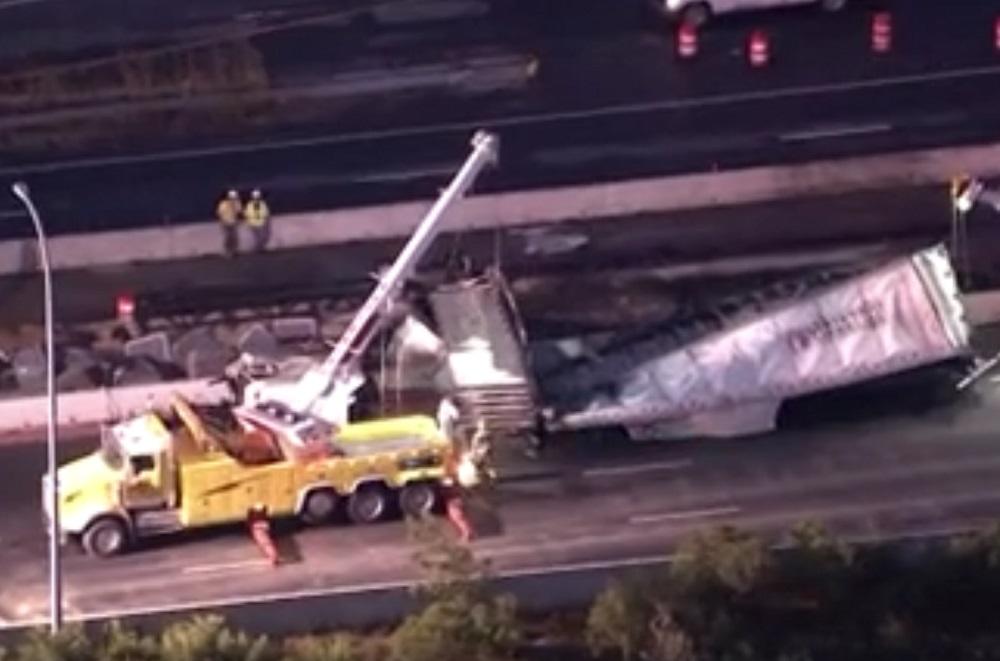 Šef Državne policije Delavera Džefri Hejl potvrdio je da se šleper prevrnuo i zapalio kraj mesta Nju Kasl.