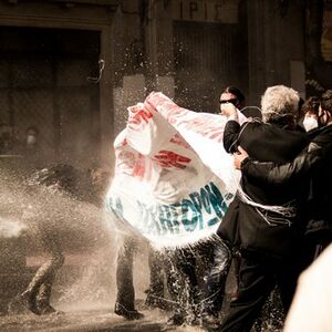 Međutim, list Katimerini dodaje da se na društvenim medijima vidi drugačija slika - građani koji su mirno razgovarali s policijom su odjednom napadnuti pendrecima.