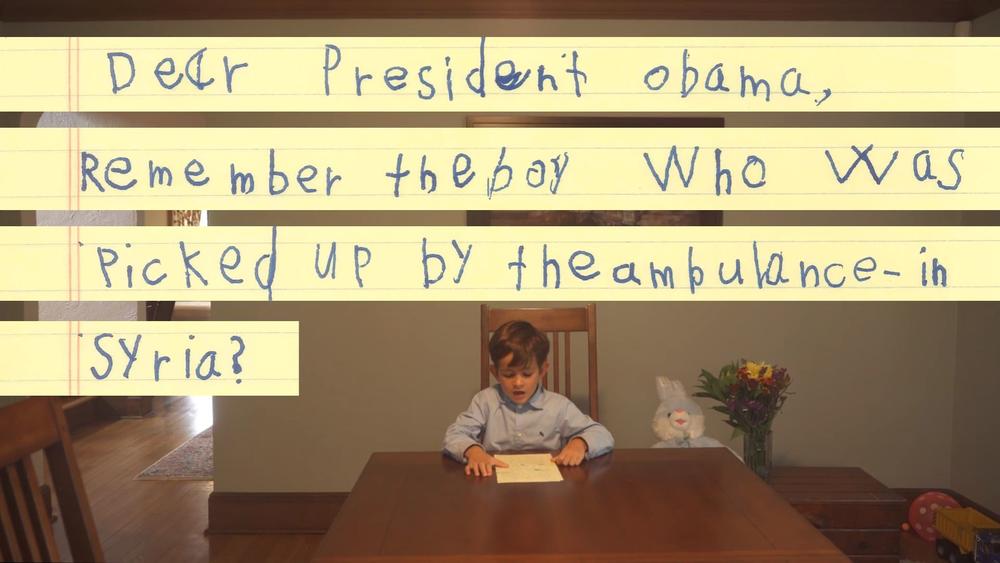 - Dragi predsedniče Obama, sećate li se dečaka u koga su prevozila amubulantna kola u Siriji? Da li biste mogli da odete po njega i da ga dovedete u naš dom? Dočekaćemo vas sa zastavama, cvećem i balonima. Primićemo ga u našu porodicu i on će biti naš brat!