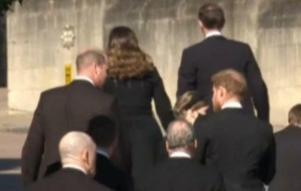 Nakon što su trubači kraljevskih marinaca odsvirali poslednji pozdrav, a kovčeg vojvode od Edinburga smešten u kriptu kapele Svetog Đorđa u Vindzoru, mediji su snimili prinčeve Harija i Vilijama kako zajedno odlaze sa službe.