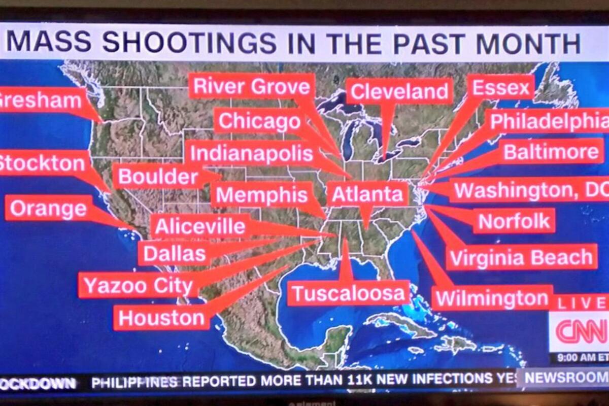 Od 16. marta 2021 kada je u tri SPA centra u Atlanti ubijeno osmoro ljudi,a jedna osoba ranjena u SAD se dogodilo najmanje 50 vatrenih obračuna, saopštio je CNN prenoseći podatke lokalnih medija i policijskih saopštenja.