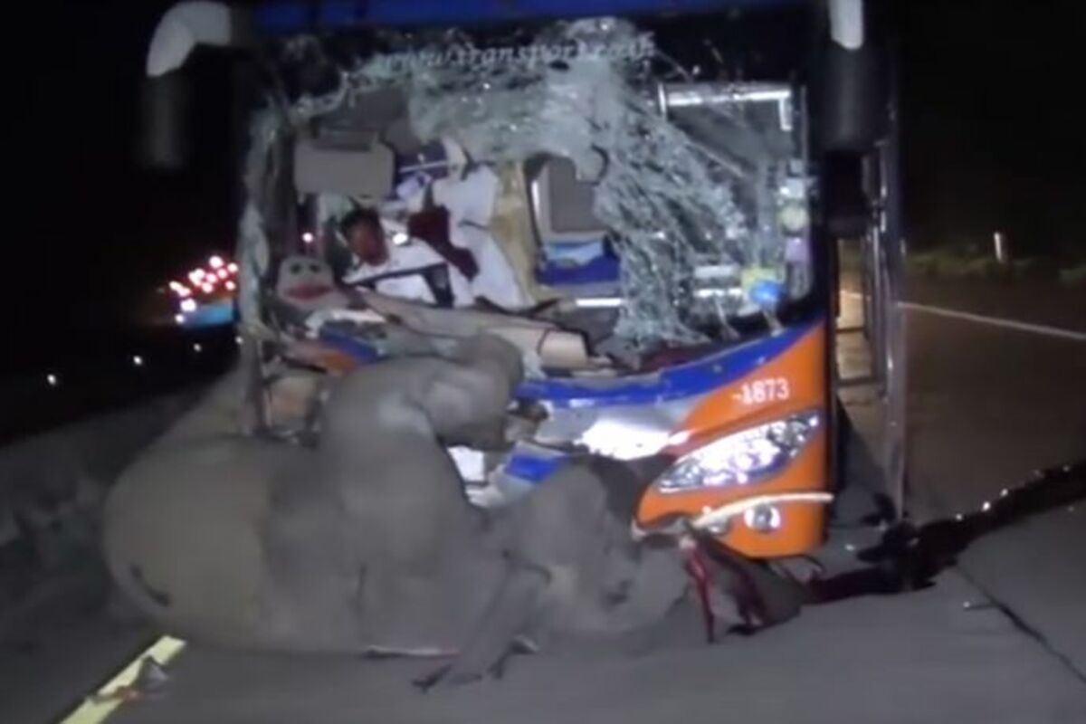 Mobilnim telefonom je snimljen trenutak kada je ošamućeni slon udario u autobus koji se kretao brzinom od 60 kilometara na sat. Vozilo je nakon sudara klizilo sa slonom pod prednjim točkovima još nekih 30 metara.
