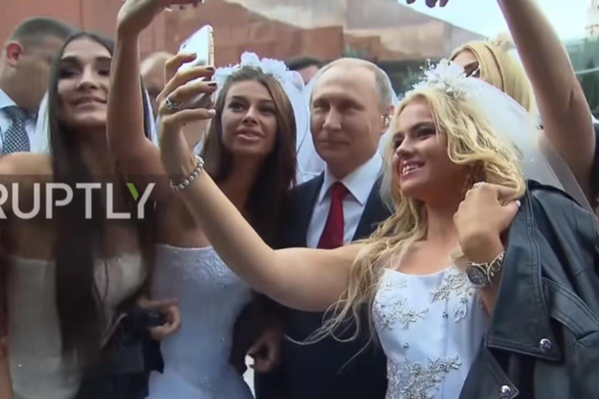 Vladimir Putin jako se dobro drži. Još uvek sa saleću žene na ulici, a pre nekoliko godina su ga "napale" mlade devojke, taćnije modeli obučeni kao neveste.