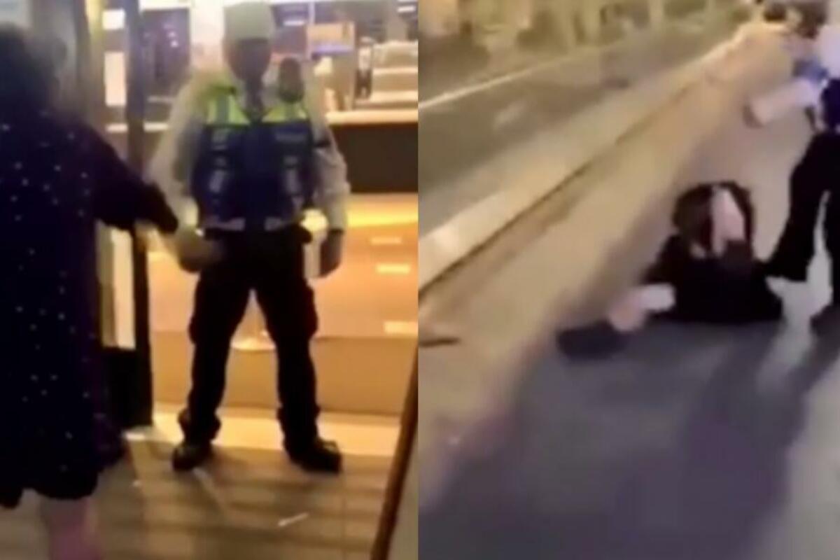 Snimatelji-svedoci čuju se na snimku kako potiču ženu da "to učini". Nakon par trenutaka žena baca čašu čuvaru u lice i u istom trenu pobegne. Čuvar odmah uzima palicu u ruke, trči za ženom, ona pada na tlo, a čovek je krene udarati palicom i nogama.