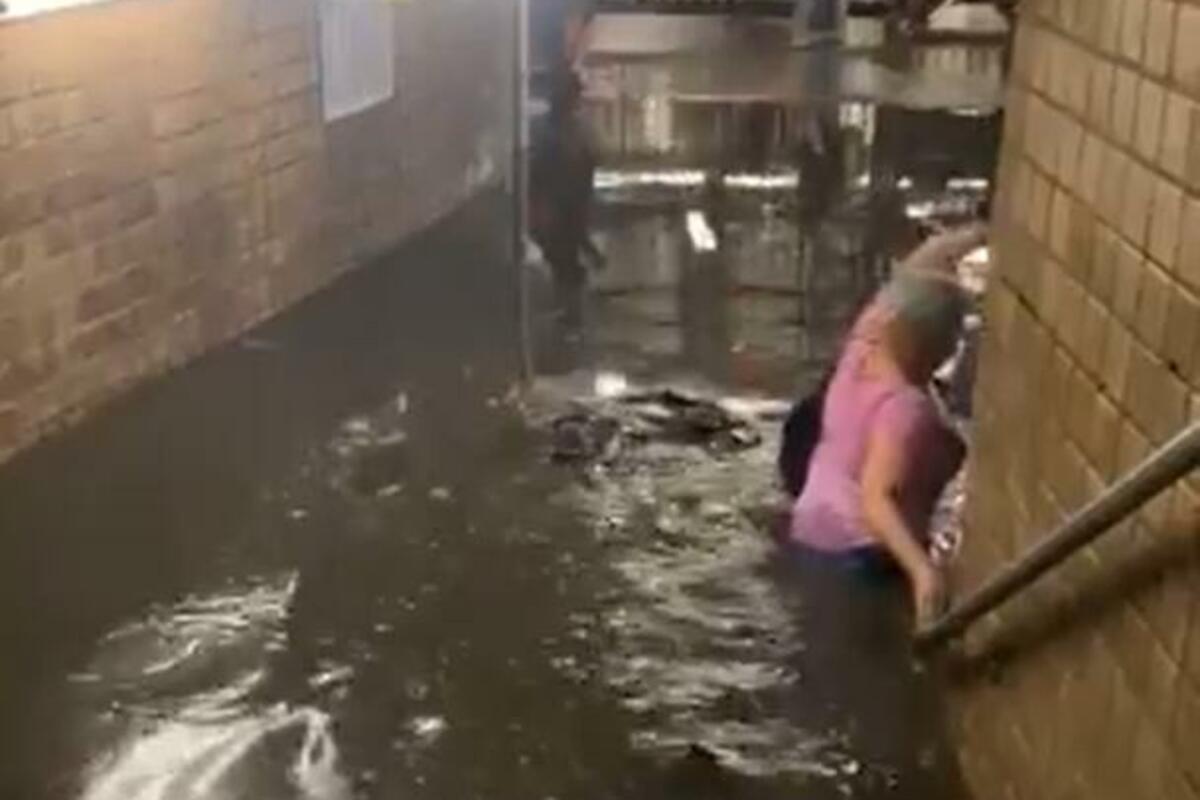 Podzemna železnica Njujorka, najveća na svetu, propuštala je vodu svugde, a na društvenim mrežama su se pojavili video snimci sa stanica u centru grada gde voda lije sa plafona, a u Bronksu sa stepenica, piše Gardijan.