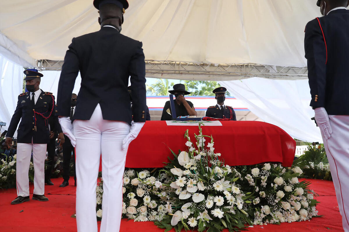 Američka delegacija i drugi zvaničnici žurno su ispraćeni do svojih vozila nakon što su se pojavile informacije da su ispaljeni hici, a policija je upotrebila suzavac protiv demonstranata tokom sahrane ubijenog predsednika Haitija Žovnela Moiza.
