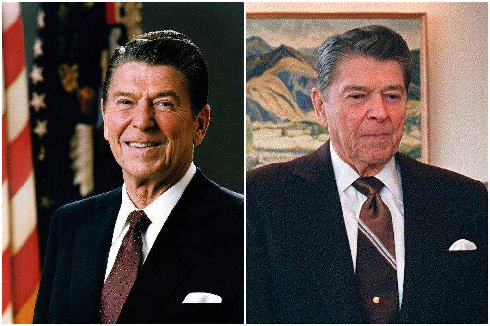 Verovatno improvizujući scenu iz njegovog filma "Bedtime for Bonzo" iz 1951. godine u kojoj se takođe nalaze šimpanze, budući 40. predsednik Sjedinjenih Država izveo je tačku u kazinu "Last Frontier" 15. februara 1954.