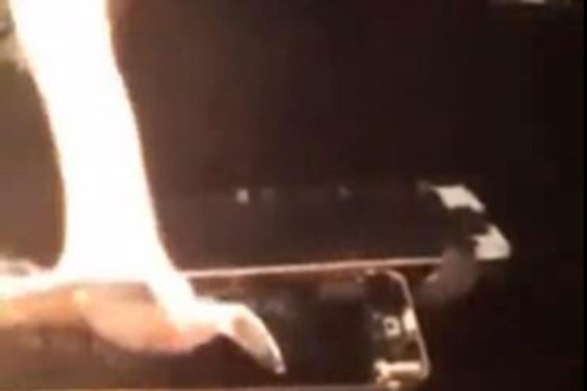Naime, uspela je da napravi dva reza, kada je baterija potpuno eksplodirala. Devojku je to, sudeći po snimku, preplašilo, pa je potom krenula da gasi vatru.