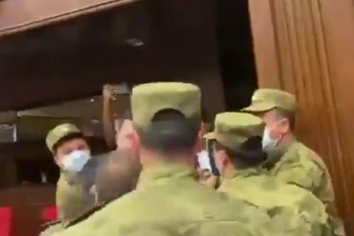 Predsednik parlamenta Alen Simonjan zahtevao je da opoziciona poslanica napusti salu, nakon čega su uniformisani pripadnici Službe bezbednosti upali u salu i pokušali da je izvedu.