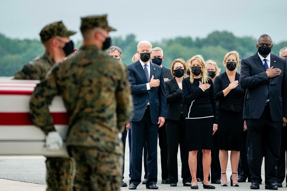 Bajden, prva dama SAD Džil i zvaničnici administracije prisustvovali su u nedelju vojnoj ceremoniji dostojanstvenog prenosa posmrtnih ostataka 13 žrtava, koji su dopremljeni avionom američkih vazduhoplovnih snaga.