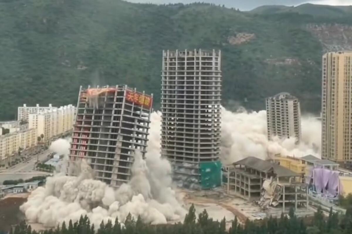 Čak 15 nebodera, koji su deo nezavršenog projekata, minirano je za svega 45 sekundi zbog nedostataka u izgradnji.