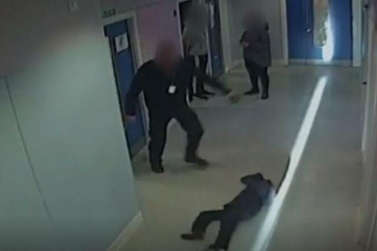 Kristofer Kruz (57) na početku šokantnog snimka preti detetu sa autizmom da će ga šutnuti, dok dečak pokušava da otpuzi kroz vrata, a zatim ga policajac hvata za kapuljaču i odvlači kroz hodnik škole u Liverpulu.