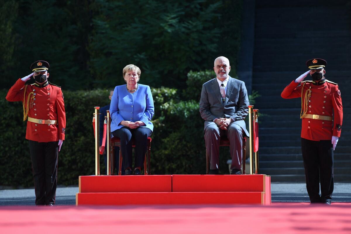 Merkel se odmah po dolasku u Tiranu sastala sa Edijem Ramom u Palati brigada ispred koje joj je priređen svečani doček. Rama je sav ponosan čekao gošću, ali nije sve baš "išlo kao podmazano".