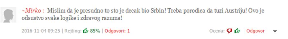 Iako se slučaj odigrao u glavnom gradu Austrije, ipak se delimično tiče i Srbije. Internet portali su puni ozlojađenih komentara naroda... I kako je moguće da niko iz državnog vrha još uvek nije reagovao u vezi sa slučajem?