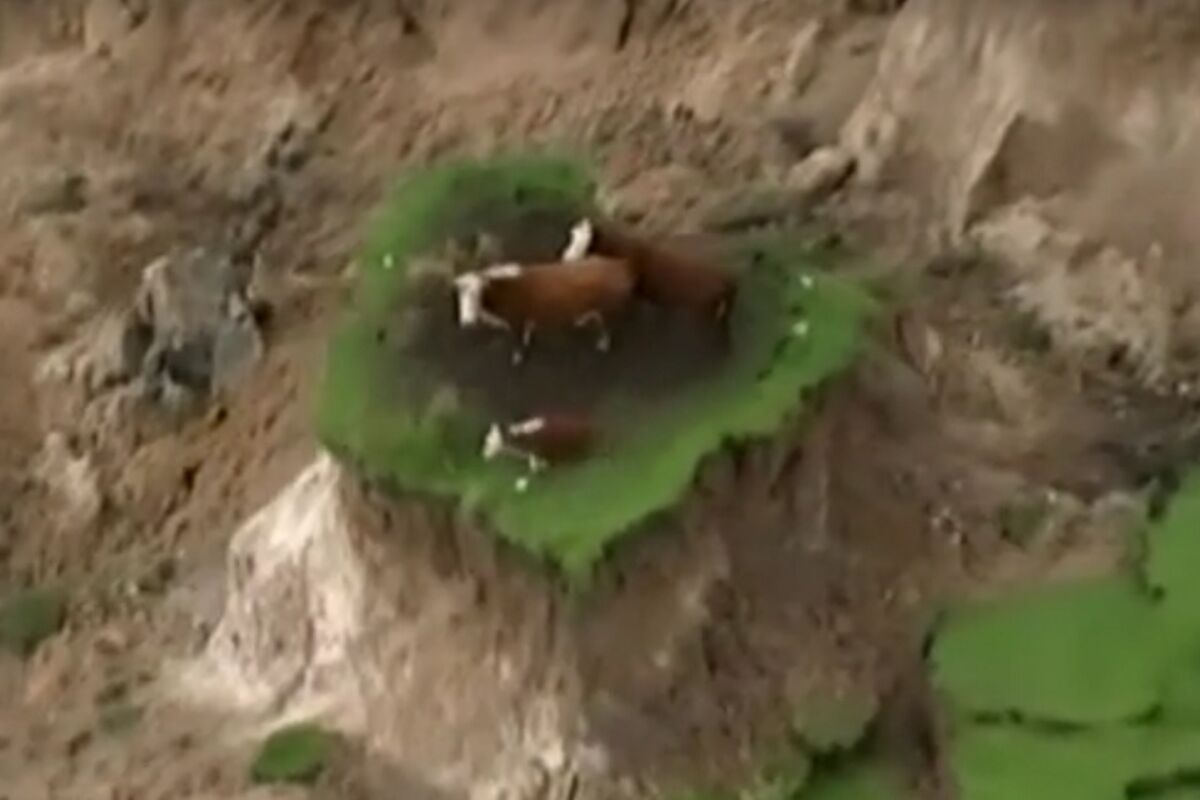 Jak zemljotres na Novom Zelandu, koji je izazvao odrone, ostavio je dve krave i tele nasukane na malom ostrvu od pašnjaka na kojem su bile do tada.
