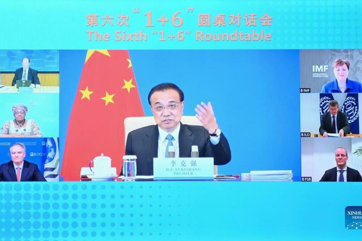 Premijer Kine Li Kećijang juče je u Pekingu održao šesti video-dijalog okruglog stola „1+6“ sa čelnicima velikih međunarodnih ekonomskih institucija.