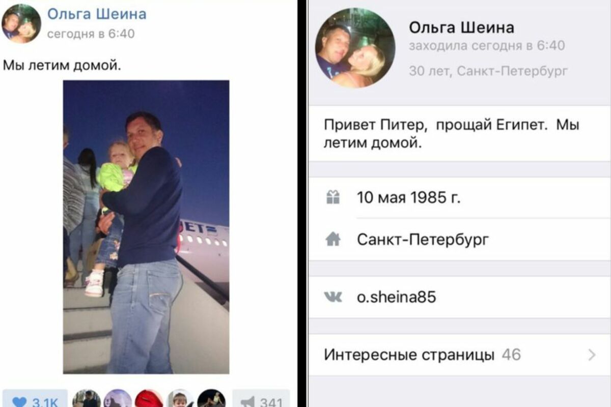 Porodica Šein nalazila se u avionu na letu od Šarm el Šeika do Sankt Petesburhga koji se srušio neposredno nakon poletanja. UŽIVO: Pao ruski avion sa 224 putnika! 100 tela izvučeno, nema preživelih! (VIDEO) (FOTO) Tridesetogodišnja Olga Šein objavila je fotografiju svog muža Jurija i njihove ćerke, trogodišnje Anastasije dok su se ukrcavali u avion.