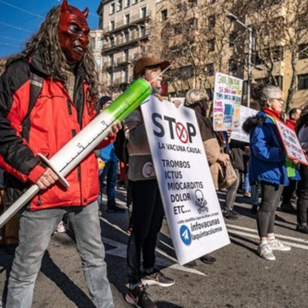U centru Barselone demonstranti su danas nosili kostime i mahali transparentima na kojima je pisalo "To nije pandemija, to je diktatura", dok su marširali u znak protesta zbog ograničenja koja su nametnule i nacionalne i regionalne vlasti da bi suzbile porast slučajeva kovida 19 podstaknut omikron varijantom.