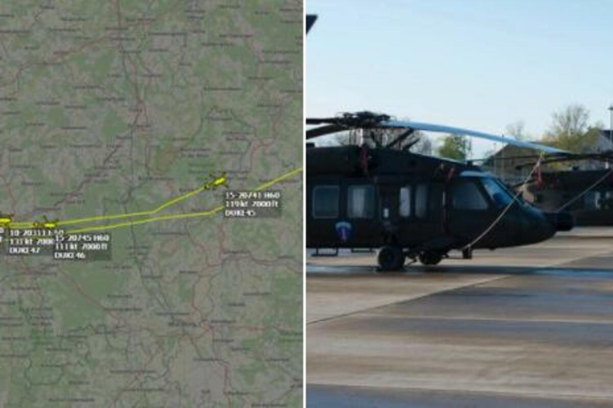Oko deset transportnih helikoptera UH-60 Blek Hok (Crni jastreb) koji pripadaju 1. bataljonu 214. avijacijskog puka američke vojske koji su stacionirani u bazi u Visbadenu u Nemačkoj iznenada su promenili mesto baziranja