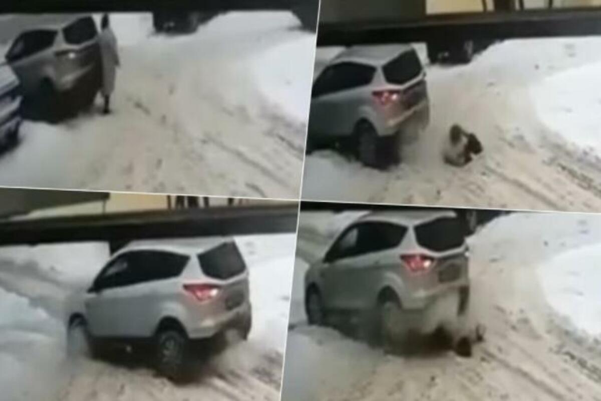 Vozač, misleći da je zapeo u sneg, prvo daje gas, pa se zatim kreće unapred kako bi ponovo pokušao da pređe “prepreku”. Kada je žena pokušala da ustane, ponovo auto prelazi preko nje, gurajući je nazad u sneg.