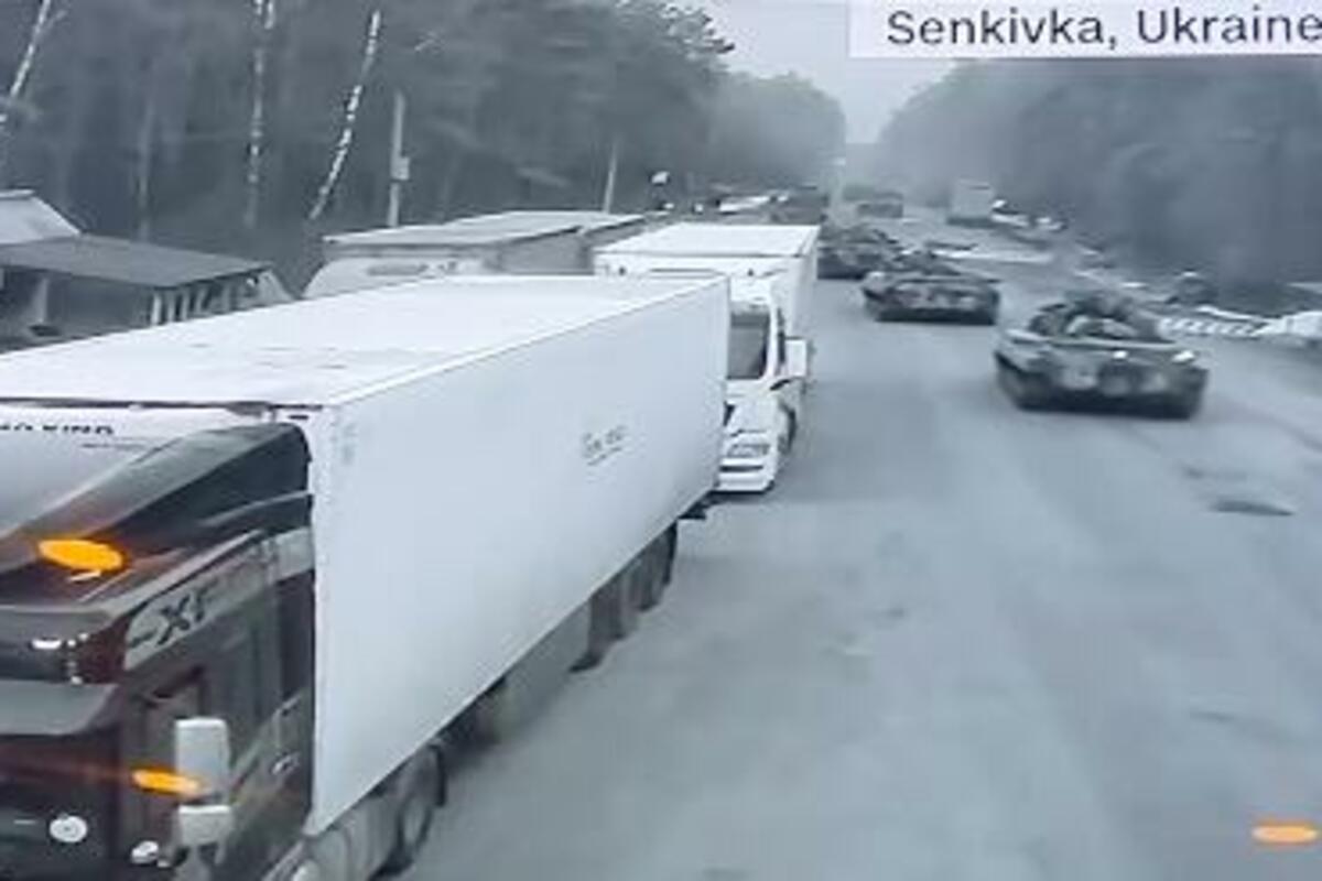 Trupe ulaze u Ukrajinu preko Belorusije: CNN je, putem video snimka uživo prikazao kako vojna kolona tenkova ulazi u Ukrajinu. Pretpostavlja se da su u pitanju ruski.