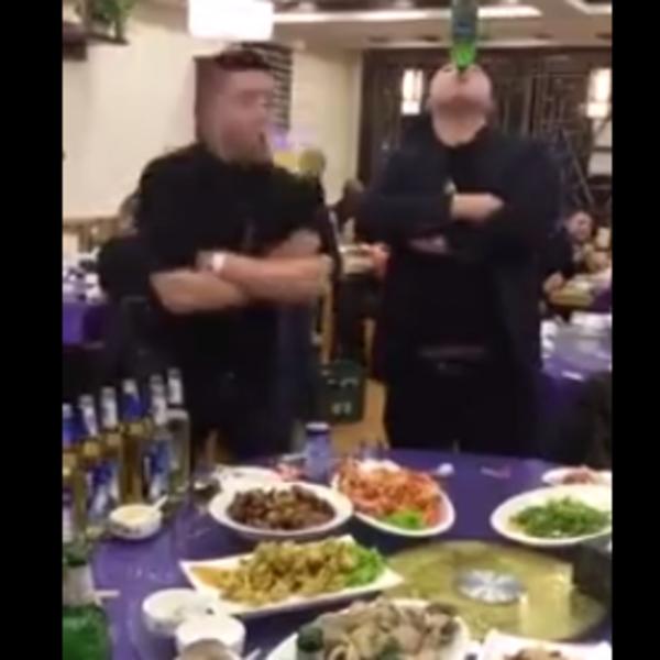 Očigledno nakon velike doze pića, ona je pokušavao da preskoči ogradu, dok su se u pozadini ljudi kidali od smeha.