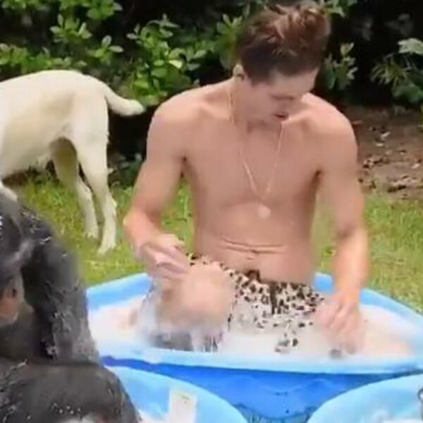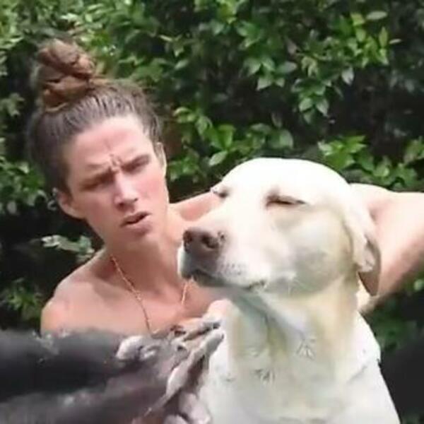 OVAJ PAS ŽIVI BOLJE OD MNOGIH LJUDI: Kupaju ga 2 MAJMUNA I NJEGOV ČOVEK, vidi mu se BLAŽENSTVO NA FACI! (VIDEO)