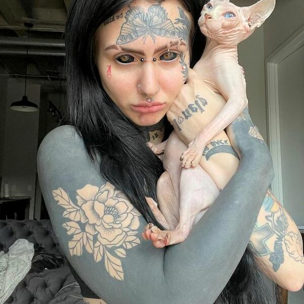 Crnokosa 22-o-godišnjakinja je ukrasila telo tetovažama, a čak i trajnim injekcijama u svojim očima kako bi ih obojila u crno.