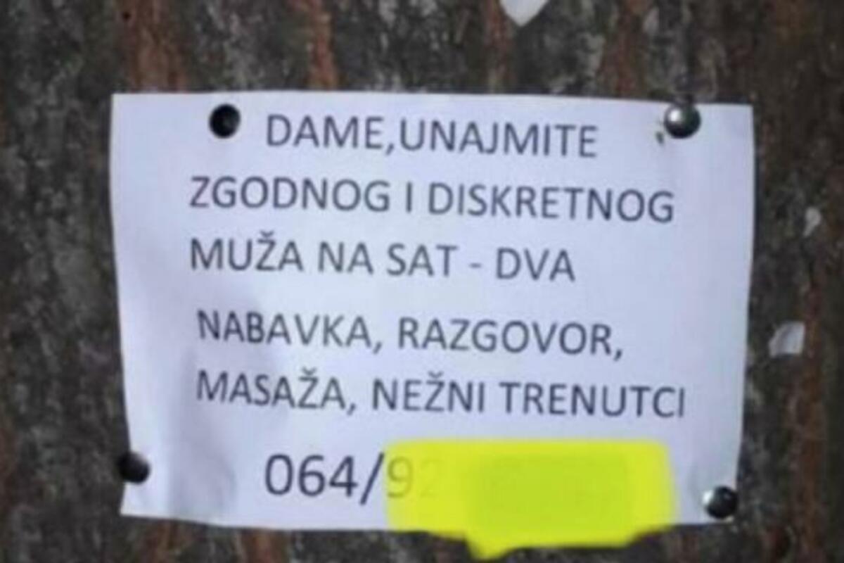 AKO VAM TREBA MUŽ NA SAT ILI DVA, EVO KOME MOŽETE DA SE OBRATITE: Ljubavni oglas u Pančevu dovodi do suza! (FOTO)