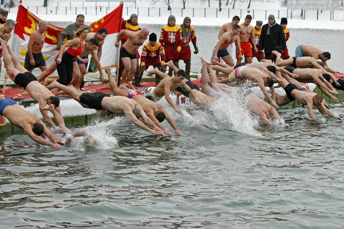 SKANDAL NA BOGOJAVLJANJU U PODGORICI! Plivao za časni krst, a na grudima KUKASTI KRST! (FOTO)
